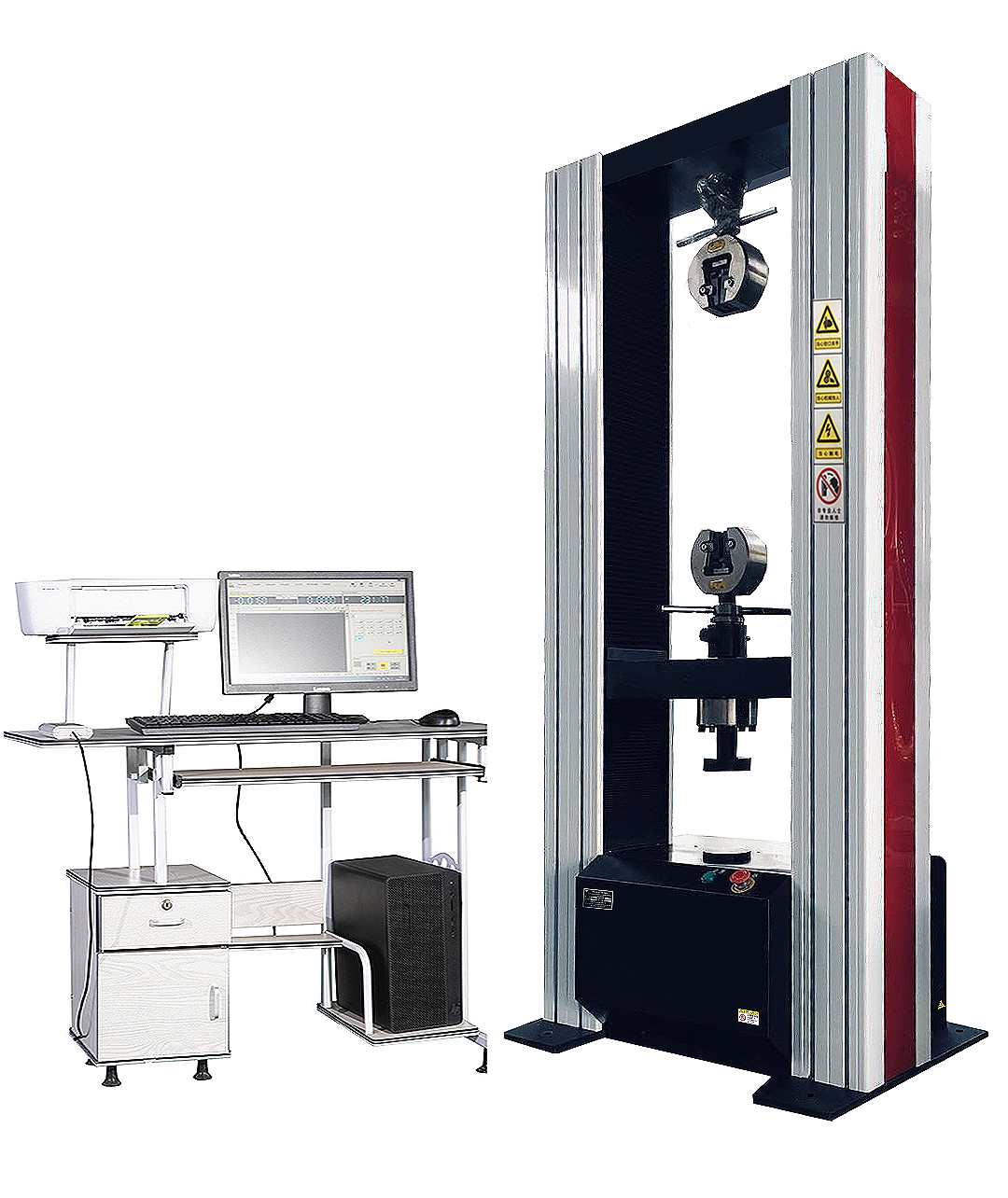 單臂電子萬能試驗機性能特點:采用的是單臂式結構形式,試驗行程一般有600/1000mm,活動性能小,樣式簡單,落地式和門式相對單臂比較笨重,單臂配置相對低一點,試驗力準確度一般是±1%,位移分辨率0.001mm。